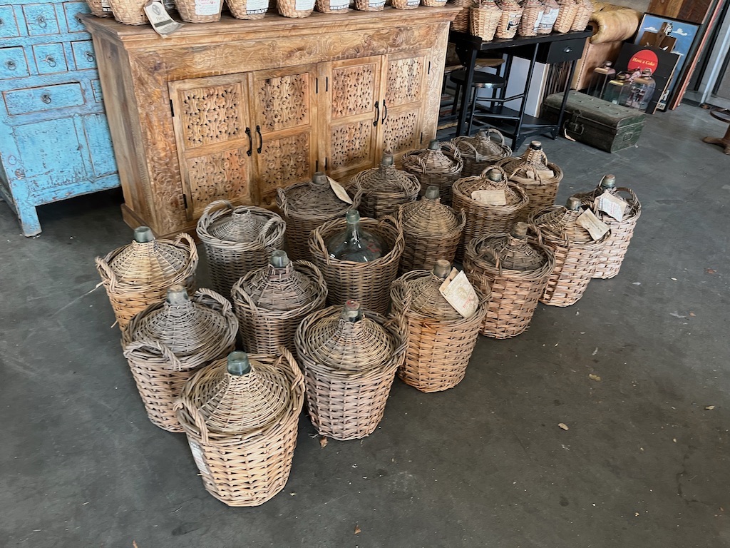 OverzichtZeer fraaie Mandflessen/Dame-Jeanne/Demijohn, echt zeer uniek. Erg decoratief zowel met mand als zonder mand(zonder mand mooie groene fles).