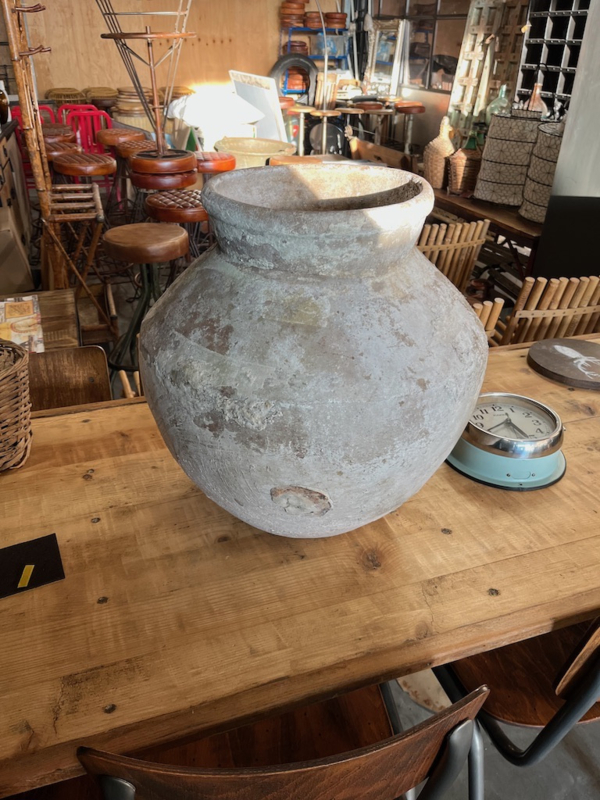 Zeer fraaie oude stenen vaas, staat mooi in Sober, landelijk interieur. De afmetingen zijn: 46 cm hoog, 46 cm diameter en opening gat bovenzijde 30 cm.