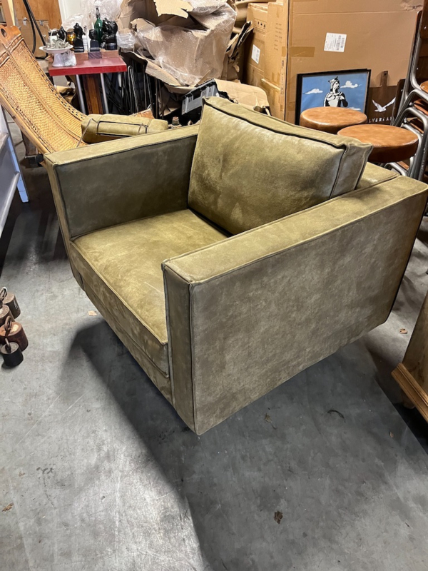 Fauteuil Woood/Bepure Olijfgroen Ecoleer in zeer goede staat