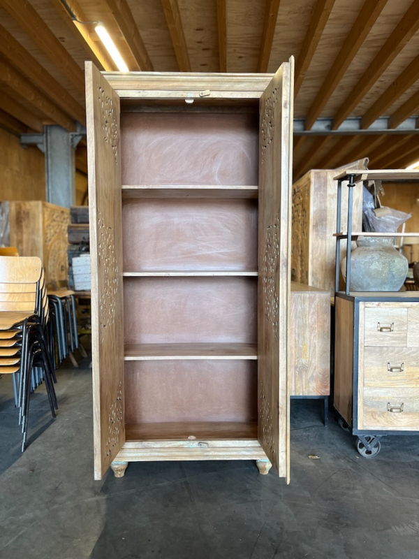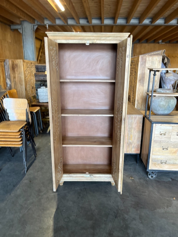 OverzichtZeer fraaie nieuwe handgesneden kast afkomstig uit India, echt een eycatcher voor in huis. Zeer fraai uitgesneden. Past zeer goed in inrichting Ibiza/Boho/Botanisch. De afmetingen zijn: 90 cm breed, 191 cm hoog en 41 cm diep. Ook eventueel nog een bijpassend dressoir bij te koop zie hiervoor mijn andere advertenties.