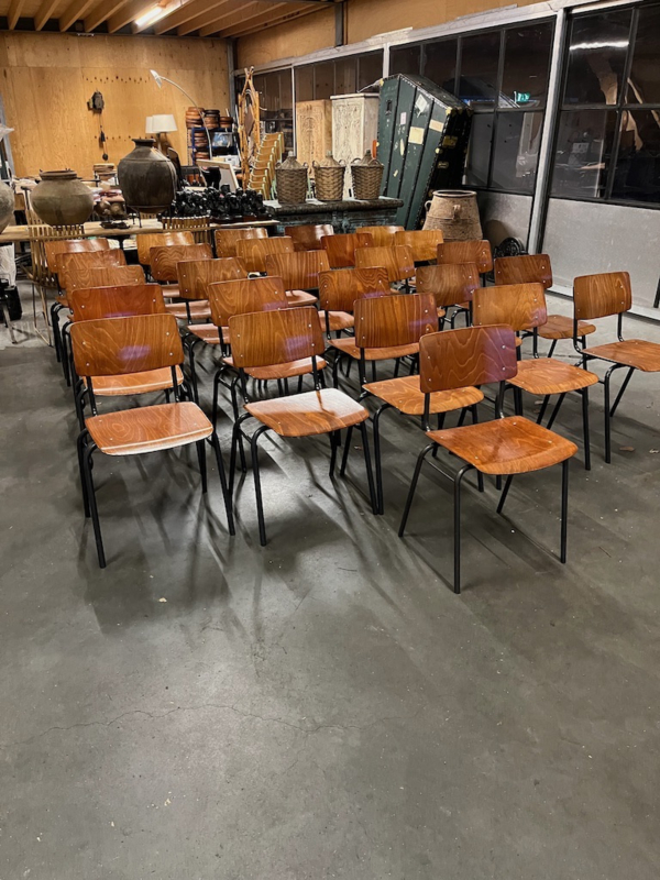 Mooie industriele/vintage schoolstoelen/stoelen. De afmetingen per stoel zijn: 78 cm hoog, 49 cm breed, 51 cm diep, 45,5 cm zithoogte en 42 cm zitdiepte.